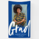 Célébrez à votre diplômé cette bannière verticale de faire-part de graduation en bleu et blanc d'une photo qui présente un script moderne et branché et audacieux "grad". Parfait pour les fêtes de fin d'études ou juste pour se raccrocher à la célébration de la réussite de votre lycée ou de vos études supérieures. La couleur arrière - plan peut être modifiée en cliquant sur "customiser plus loin".