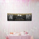 Banderole moderne à double diplôme avec un arrière - plan noir qui peut être changée à n'importe quelle couleur, parties scintillant or élégante, planches à mortier, photos des deux diplômés, et un simple modèle à double célébration facile à personnaliser.