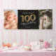 Banderole du 100e anniversaire de la marque avec un arrière - plan noir branché, 2 grandes photos, parties scintillant or et confetti, 100 ballons d'hélium empreintes de léopard, et un modèle de célébration personnalisé facile à personnaliser.