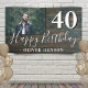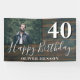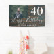 Bannière photo Rustic Wood 40th Birthday Party. Grand signe pour la fête du 40ème anniversaire avec une photo personnalisée et un texte en script blanc tendance avec un nom. L'arrière - plan est de texture bois foncé. Personnalisez le panneau avec votre photo, votre nom et votre numéro d'âge.