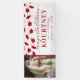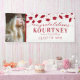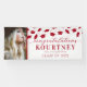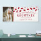Fêtez la réussite de votre diplômé avec notre bannière moderne de remise de diplômes. Doté d'un arrière - plan blanc personnalisable, d'une photo personnalisable du diplômé, de casquettes de mortier rouge en chute libre et d'un modèle de texte élégant. Cette bannière fusionne le style et la célébration sans effort, ce qui en fait une pièce exceptionnelle à n'importe quelle fête.