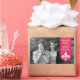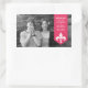 Bannière moderne et élégante Chic Flourish Photo Save the Date Stickers avec une bannière flèche en magenta ornée d'une simple décoration de fleur de lis. Ces autocollants de date classe sont parfaits pour annoncer votre prochain mariage. Facile à customiser, ajoutez simplement vos propres photos et détails mariages. Cliquez sur "Customiser" pour trouver d'autres options de personnalisation.