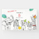 Bannière pour la fête du 5ème anniversaire avec amusantes illustrations d'animaux mignons dessinées dans le style crayon.