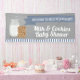 Un adorable panneau de bannières rayées de lait et de biscuits modernes qui est idéal pour un baby shower. Les couleurs sont le gris, le bleu et le blanc. C'est une touche moderne. Le design a une pile de biscuits à puces de chocolat avec une bouteille de lait.