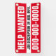 Vous embauchez et vous voulez vous faire connaître ? Cette bannière économique 1' x 2', "Aide Recherchée" avec ligne de description de travail et numéro de téléphone, est entièrement personnalisable! Pour un usage intérieur ou extérieur. Toutes les bannières sont revêtues et soudées pour un bord fini propre. Pour une installation extérieure facile, sur n'importe quelle surface, utilisez l'option grommet.