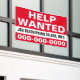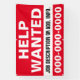 Vous embauchez et vous voulez vous faire connaître ? Cette grande bannière "Aide Recherchée" à un côté de 4' x 6' avec ligne de description de travail et numéro de téléphone, est entièrement personnalisable! Pour un usage intérieur ou extérieur. Toutes les bannières sont revêtues et soudées pour un bord fini propre. Pour une installation extérieure facile, sur n'importe quelle surface, utilisez l'option grommet.