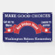 Dites à la communauté que votre école est sans drogue et qu'elle soutient la semaine du ruban rouge. Texte : Dites Non Aux Drogues, Choisissez De Refuser. Customisez votre bannière d'école avec votre propre message texte. Parfait pour les écoles primaires, secondaires et secondaires. Bannière de la grande communauté. Le design se décline sur un thème rouge, blanc et bleu avec des rayures, des étoiles et un ruban rouge. Design bleu moderne.