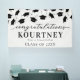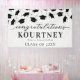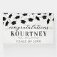 Banderole moderne de fête de graduation avec un simple arrière - plan blanc qui peut être changé à n'importe quelle couleur, tomber casquettes de mortier noir, et un modèle de texte de félicitations qui est facile à personnaliser.