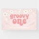 SUPER ! Bannière d'anniversaire de marguerite d'inspiration rétro avec marguerites de style 70's et polices et couleurs boho.