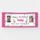 Ajoutez la photo de votre fille à cette bannière d'anniversaire géante des coeurs roses et des étoiles.