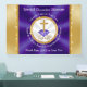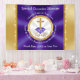 Bannières personnalisées, chrétiennes pour l'Eglise ou toute occasion. Bannière d'appréciation du pasteur, Bannière d'anniversaire pour le pasteur, la retraite, l'anniversaire ou votre fête à thème chrétien. Vous pouvez TRANSFÉRER ce design à des MILLIERS d'autres cadeaux et idées de parti chrétien. Le violet et l'or entourent une Croix d'or et une pierre de taille violette. CLIQUEZ sur le bouton "Personnaliser" pour saisir votre occasion spéciale, le nom de l'église ou votre texte, le nom du pasteur et de la femme ou le nom et la date du couple, pour les bannières de l'Anniversaire chrétien ou pour vos décorations de Mariage à thème violet et or.