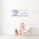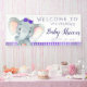 Banderole de baby shower d'éléphant pour filles avec adorable éléphant de petite fille avec un mignon arc violet sur un joli arrière - plan rayé violet. Cette jolie bannière de baby shower d'éléphant est facilement customisée avec vos détails.