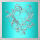 Élégante affiche de fête d'anniversaire seize ans bleu sarcelle argent cœur doux.