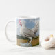 Photo d'une poule bantam hollandaise debout sur un poteau de clôture. Conception répétée des deux côtés de la tasse. Le style, la taille et la couleur des tapis sont personnalisables.