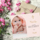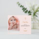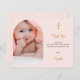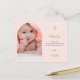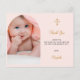 Une carte de remerciements de baptême moderne et élégante. Un arrière - plan d'or rose et chic. Personnalisez et ajoutez votre photo de l'enfant, merci note et nom. Arche photo cadre