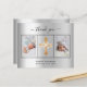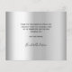 Ajoutez 3 de Vos photos, taille verticale, une date, un nom et la note de remerciement. Un arrière - plan faux argenté avec du texte et du cadre noirs. Le texte : Merci sur l'avant et votre nom sur l'arrière sont écrits avec une écriture manuscrite stylisée avec des swashes.