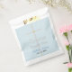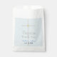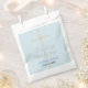 Élégant Baptême Son Merci Papier Favoriser les Sacs avec simple croix d'argent peint à la main avec des accents d'or. Personnalisez le nom dans le script bleu, et la date dans le texte noir contre un arrière - plan bleu clair. Cliquez sur Personnaliser pour modifier la taille ou la couleur de la police. Oeuvre et design graphiques d'origine © TamiraZDesigns.