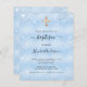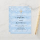 Pour un baptême, célébrer un bébé garçon. Un faux arrière - plan bleu à l'allure métallique. Décoré avec de la poussière de parties scintillant en faux bleu. Personnalisez et ajoutez le nom et les détails. Le nom et le baptême sont écrits avec une écriture manuscrite