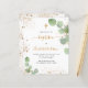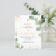 Un arrière - plan blanc décoré d'une végétation d'eucalyptus et d'une poussière de parties scintillant en faux or. Personnalisez et un nom et des détails de la cérémonie. Lettres noires et dorées. Dos : arrière - plan blanc avec poussière de parties scintillant en faux or.