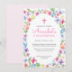Cette belle invitation au baptême ou au baptême présente des fleurs colorées d'aquarelle et des papillons. Si élégant et joli ! Tous les détails, y compris l'âge, sont personnalisables, tandis que les articles correspondants sont également disponibles. © Mini Moi Prints