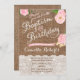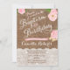 Une invitation rustique mais jolie Baptême et Anniversaire (n'importe quel âge) pour le grand jour de votre petite fille. L'arrière - plan est un effet burlap avec l'écriture "dentelle" et le boisseau. Le tout complété par de jolis détails de fleurs d'aquarelle rose.