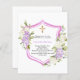 Un arrière - plan blanc. Décoré d'une crête rose, de fleurs roses et violettes, de fleurs, de fleurs. Avec une croix d'or. Personnalisez et ajoutez un nom et des détails. 1 feuille = 1 invite imprimé bord à bord.