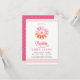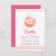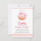 Ce baptême ou baptême de filles de 3,5 x 5 pouces, élégant et moderne, est doté d'une rosette de style vitrail et d'une décoration complémentaire rose et orange sur les bords supérieur et inférieur du invitation. La couleur et le texte arrière - plans peuvent être customisés pour votre événement religieux spécial.