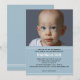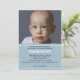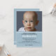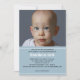 Cette belle invitation Baptême contemporaine et élégante permet d'ajouter la photo de votre enfant ou de votre famille. Arrière - plan bleu avec texte blanc et bordures d'accents.