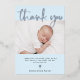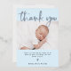 Ce bleu clair simple et élégant avec feuille d'argent Baptême ou carte de remerciements de Christening comprend deux photos de votre bébé, avec élégante typographie de scénario de feuille d'argent moderne et une croix d'argent assortie.