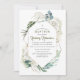 Hydrangée blanche et verdure invitations géométriques de baptême moderne