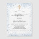 Un baptême moderne et élégant, célébrant un bébé garçon. Arrière - plan blanc décoré avec des étincelles de parties scintillant bleue et une croix d'or. Personnalisez et ajoutez un nom et des détails du parti. Lettres de couleur noire.