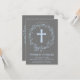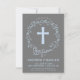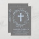 Ce invitation moderne baptisme ou baptême présente une élégante couronne de fleurs bleues à l'aquarelle ainsi qu'une croix bleue. Idéal pour la célébration religieuse d'un petit garçon, il peut être customisé avec le nom de votre enfant et les détails de l'événement.