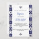 Cette élégante carte d'invitation au baptême mexicain bleu présente un look floral bleu et peut être customisé avec votre propre texte. faites votre propre et achetez ce produit d'invitation au baptême mignon maintenant.