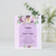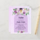 Arrière - plan violet, lavande aquarellé. Décoré de fleurs violettes et violettes aquarelles et d'une croix dorée. Personnalisez et le nom et les détails de la réception. 1 feuille = 1 invite imprimé bord à bord.