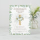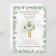 Genre Neutre classique de la verdure feuille thème Baptême Christening invitation avec des champs de texte à côté et de la place pour une ligne d'écriture ou de vers. Convient pour bébé garçon, fille, adulte, jumeaux.
