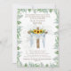 Genre Neutre classique de la verdure feuille thème Baptême Christening invitation avec des champs de texte à côté et de la place pour une ligne d'écriture ou de vers. Convient pour bébé garçon, fille, adulte, jumeaux.