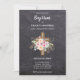 Jolie croix florale sur le thème Baptême, Christening, Bautizo, Bautismo invitation avec texte champs modèles de part et d'autre afin que vous puissiez ajouter tous vos détails de cérémonie et de réception requis ainsi que toutes les citations religieuses.