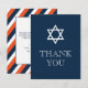 Cette Star of David carte de remerciements s'associe magnifiquement avec VG Invitations Boy Religious Ceremony Invitation Set. Il présente un design preppy sur un arrière - plan bleu marine. Le côté arrière est orangé et bleu, et une section est prévue pour ajouter votre salutation personnelle. Consultez www.zazzle.com/vginvites pour obtenir les invitations et les enveloppes correspondantes.
