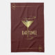 Red Bartender Bar Serviette Cocktail avec abstrait or métal olivier Verre ou Serviette de cuisine Décor. teintes Abstraites en martini or et design métallique sur arrière - plan rouge. Customisez votre bar ou votre serviette de cuisine couleur arrière - plan en ligne pour créer le verre cocktail parfait pour la décoration maison ou bar. Aucun métal métallique ne sera utilisé dans cette conception. Idéal pour les fêtes et les serviettes de fête