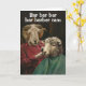 Cette carte est illustrée d'un bélier donnant une coupe de cheveux intelligente à un mouton. Ci-dessus exécute le texte de plaisanterie "Bar bar bar barber ram"