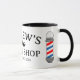 Barber shop tasse à café avec panneau à mât et moustache. Dessin à poteaux classique de salon de coiffure pour hommes, rouge et bleu. Tasse de compagnie élégante pour coiffeur styliste. Faites votre propre tasse tendance pour les boissons chaudes.