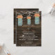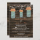 Bois rustique de Barnwood, feux à cordes pendants avec des fleurs de corail dans une bocale de mason invitations mariage. Produits correspondants également disponibles.