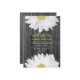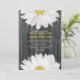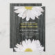 Une faire-part de mariage simple avec des marguerites qui regardent du haut et du bas. L'Arrière - plan est en bois de barnwood. Customisez le texte correspondant au centre avec les détails de votre mariage. Les caractéristiques latérales en face correspondent à l'arrière - plan en bois d'écorce. Personnalisez avec les noms de la mariée et du marié sur le monogramme. Papier recyclé. Le texte est de mariée et mariée avec leurs parents.
