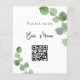 Un arrière - plan blanc chic. Décoré avec de la verdure d'eucalyptus aquarellée, des sprigs. Personnalisez et ajoutez votre propre code QR à votre site Web avec le menu à barres