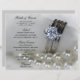 Customisez le joli menu Mariage Diamond Rings and Pearls avec les détails du repas que vous pourrez servir à votre dîner ou déjeuner mariage en ajoutant la salade ou le premier plat, l'entrée ou le deuxième plat et le dessert ou le troisième plat. Personnalisez-le avec le nom de la mariée et du marié, le lieu de réception et la date de la cérémonie de mariage. Cet élégant menu de mariage personnalisé comprend une photo de près d'une bague fiançailles en diamant et un groupe mariage avec un collier de perle blanche.