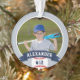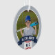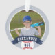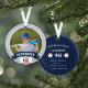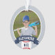 Commemorate à awesome season for your favorite baseball player with this cool custom ornament in a navy blue and gray colorway. Personalize the front with the player's photo, name and jersey number, and add more details to the back, including the team or league name, season, age, position, and coach name.