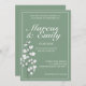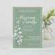 Joli, moderne, minimaliste faire-part de mariage avec vert basilic tendance arrière - plan avec simple blanc floral et des blocs de texte personnalisables dans les polices modernes