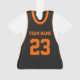 maillot de sport de l'équipe de basket noir, orange et blanc avec nom et numéro d'équipe. Les couleurs orange et blanche sont modifiables sur le maillot noir.