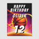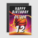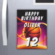 Basketball Ball Hoop it up Sports Happy Birthday Magnet Card. Ce design moderne a le texte "Joyeux anniversaire", un nom personnalisé, l'âge et un ballon de basket sur un arrière - plan vivant et dynamique. Le thème du basket le rend parfait pour l'anniversaire d'un fan de basket. Personnalisez avec votre nom et votre âge.
