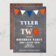 Cute Chalkboard Basketball Anniversaire Invitation pour les garçons 2e anniversaire // Carte d'anniversaire de basket mignonne pour le 2e anniversaire. L'aménagement comporte un grand basket-ball et des drapeaux de bunting aux couleurs orange et blanche sur l'arrière - plan du tableau de bord. A l'arrière se trouve un motif de basket. Personnalisez cet invitation d'anniversaire avec le nom d'un enfant et une photo et personnalisez toutes les données de l'invitation. Super comme une invitation de fête de 2ème anniversaire pour les garçons.